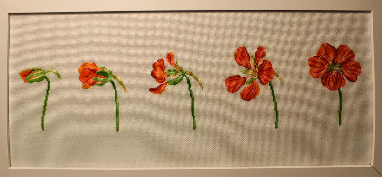 I also embroidered a cross stitch for another Christmas present, this one is of a blooming nasturtium. I enjoyed the process of doing this, as it was a fairly quick process therefore I felt accomplished when I completed it.